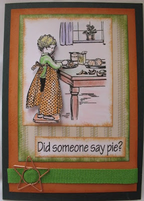 The quote is one I had on the computer and I could not resist using it here. I finished the card off with the green ribbon and a star clip - one from a packet I was given as a thank you for 'cat sitting' :-).