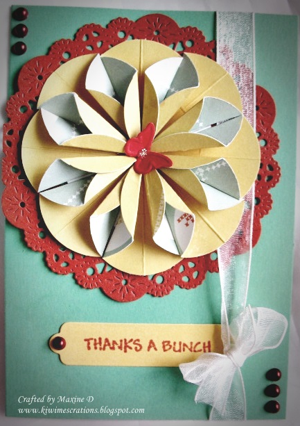 I started with this lovely rich chocolate brown card and embossed it. If anything the embossing made it seem an even richer brown. This was layered over gold and then the cream card base.